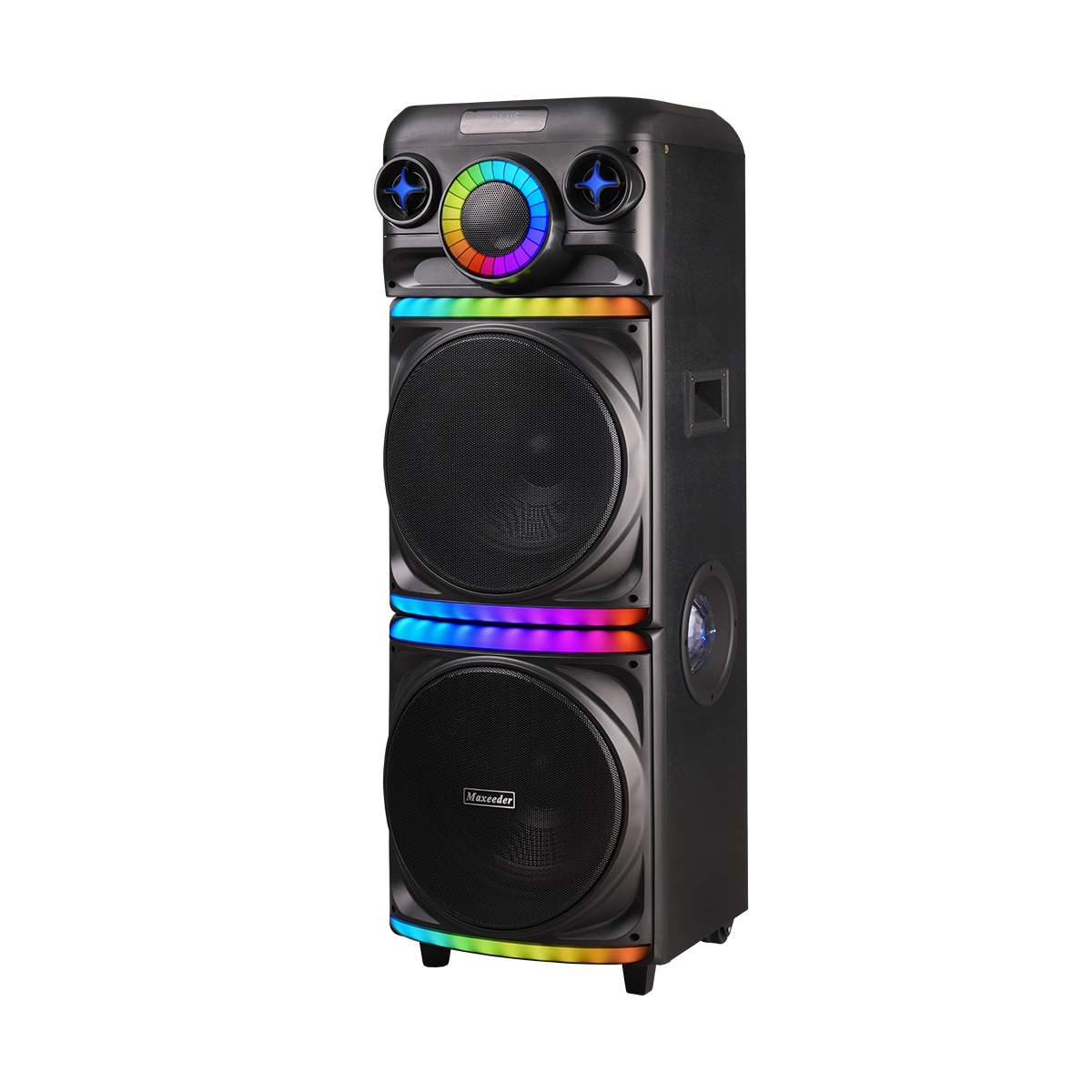 به دنیای خیال انگیز بزم و شادی خوش آمدید؛ اسپیکر CN12E07 مکسیدر به عنوان یک جواهر فناوری، شما را وارد دنیایی از صدا و نور میکند. این اسپیکر با دو ساب ووفر ۱۲ اینچ و تیوتر، به شما امکان میدهد تا به تجربهای عمیق و فوقالعاده از موسیقی دست یابید. دو نور جانبی Light Ball، نگاه همهی حضار را به خود جذب میکند و با رقص نور چرخشی RGB دور سابها، هر نغمه را به یک جشن نوری تبدیل میکند